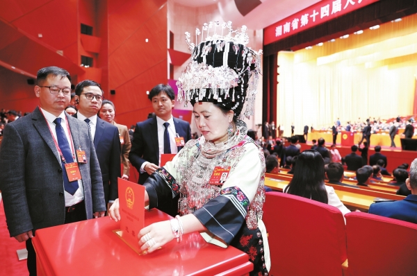 2月7日,省人民会堂,代表们投出神圣的一票。 |