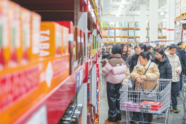 2月8日,市民在湖南湘江新区一家超市选购年货。