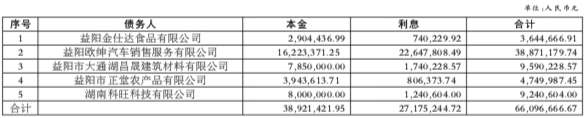 湖南省财信资产管理有限公司拟对益阳金仕达食品有限公司等5户债权资产及附属权利进行处置:截至基准日2026年1月31日,湖南省财信资产管理有限公司享有的益阳金仕达食品有限公司等5户债权资产本金合计38,921,421.95元,利息合计27,175,244.72元,债权合计金额66,096,666.67元。(利息、罚息计算以最终合同及法律文书约定及人民银行相关规定为准)。详见下表: