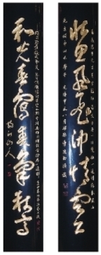 上联旁,时任贵州巡抚曹鸿勋题道:“旧藏阳明先生草书楹联,属袁杏村方伯双钩一通,刊于扶风山先生祠中,以示学子。光绪甲辰(1904年)八月潍县曹鸿勋谨。”
