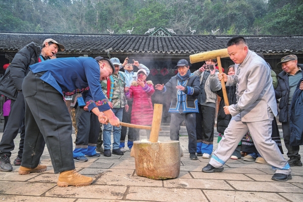 蒸熟的糯米冒着热气,等待一场恰到好处的捶打。