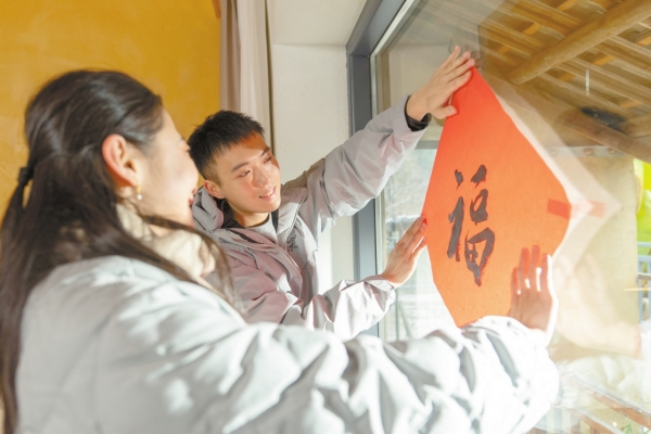 民宿老板黄桂闻声而出,喜气洋洋地将一行人带进堂屋。暖气裹着柴火香扑面而来,驱散一身寒意。炉边围坐着三四位游客,正在灶灰里煨红薯。他们见到记者,便热情地分享起来。掰开热腾腾的烤红薯,熟悉的甜香勾起记忆,年味欢欢喜喜地涌上心头。