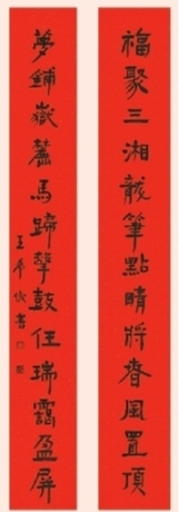 福聚三湘,龙笔点睛,将春风置顶; 梦铺岳麓,马蹄击鼓,任瑞霭盈屏。 郑凌宇 撰 王希俊 书 |