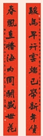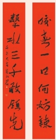 岳麓试春风,天马开题,洞庭作答; 湘江书福字,横承邹鲁,竖合朱张。 王超群 撰 罗红胜 书 |