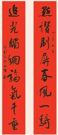 又起春风呼万马;频传捷报到三湘。 李忠林 撰 袁绍明 书 |