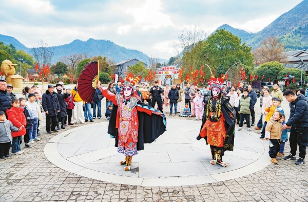 本地演员张飞跃带着徒弟们表演变脸、喷火等,赢得阵阵喝彩。
