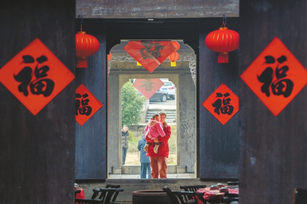 长辈给小辈派发压岁钱,青年为老人添饭夹菜……上菜的大哥踩着沉实的步伐,在厨房与天井间穿梭。