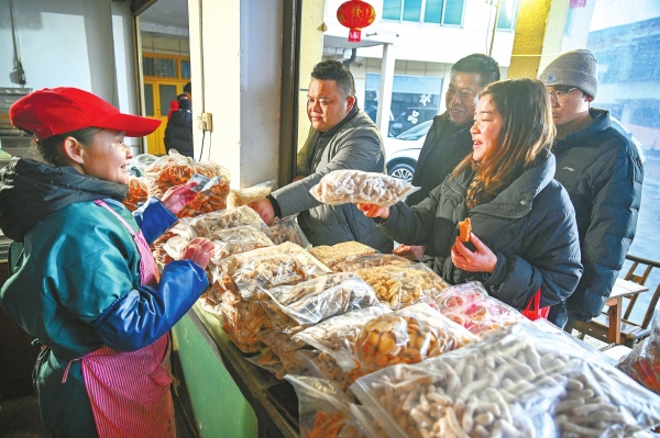洪杨村记忆点心铺,村民在选购传统年味点心。