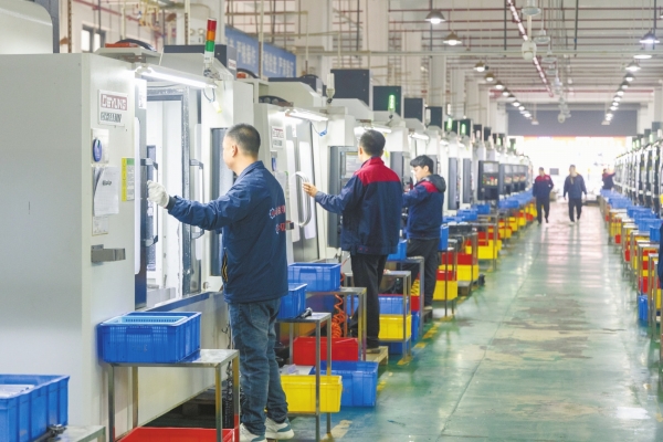 2月25日,永州市冷水滩区永州创永运动用品有限公司生产车间,工人在赶制运动鞋。春节假期后,该区企业已全面复工复产,开足马力抓生产、保交付。