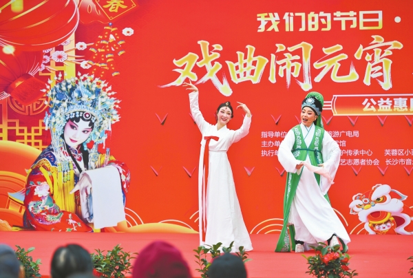 2月25日,2026 “戏曲闹元宵 欢乐满星城” 公益惠民演出在长沙市群众艺术馆前坪广场启幕,首日越剧折子戏吸引了众多戏迷驻足观看。