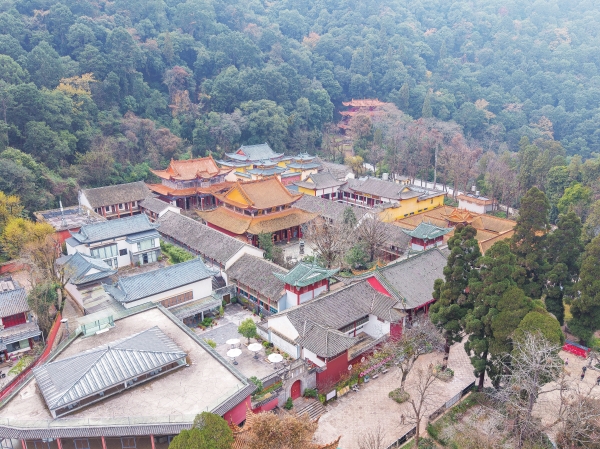 从西山山脚与马昆华一路登高,穿行于苍翠林木间,五百里滇池若隐若现。从位于半山腰的华亭寺俯瞰,滇池轻烟薄雾,若有若无。群山如屏,山色在烟云中时浓时淡。此时的我们,仿佛与古人共赏一幅春城水墨画卷,一份空幽宁静自上心头。