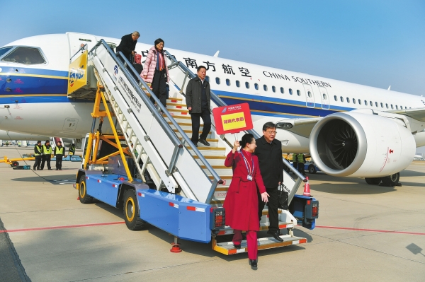 住湘全国政协委员张健、何寄华、王怀民、陈英武等同机抵达。