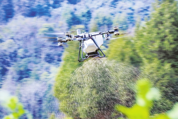 3月4日,龙山县茅坪乡水沙坪村,植保无人机在百合田里开展施肥作业。