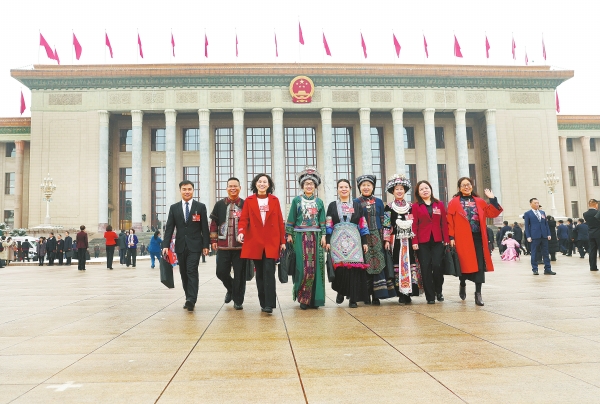 3月5日上午,十四届全国人大四次会议在人民大会堂开幕。开幕会后,湖南代表团代表走出会场。