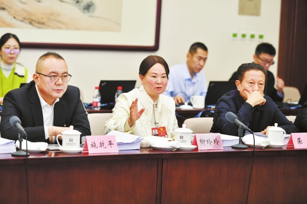 3月5日,住湘全国政协委员柳玲玲(中)在小组会议上发言。