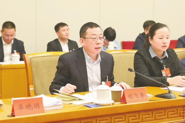 3月8日下午,刘飞香代表在湖南代表团分组会议上发言。