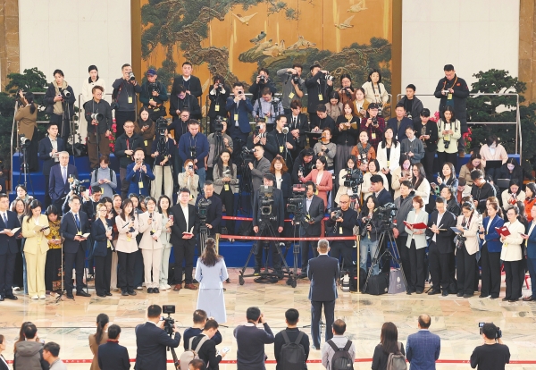 第十四届全国人民代表大会第四次会议第二场“代表通道”集中采访活动在北京人民大会堂举行(2026年3月9日摄)。