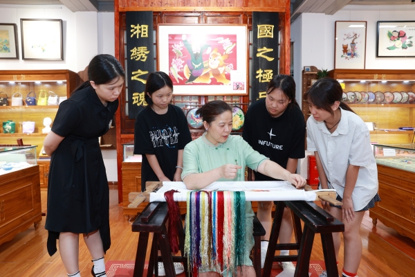罗明华与湖南师范大学合作,利用AR技术让刺绣纹样“动”起来,游客还可沉浸式体验学习。