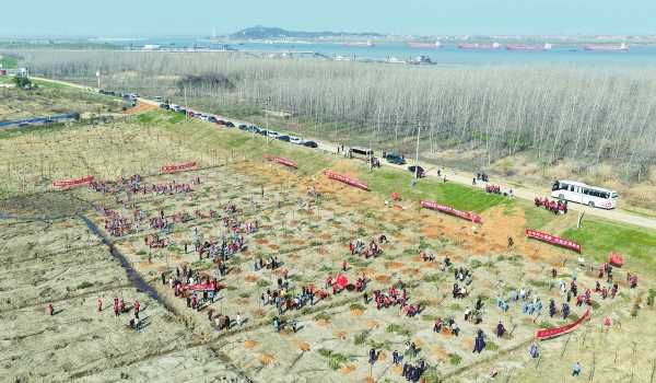 3月11日,湖南石化联合岳阳市云溪区在陆城垸新港段开展义务植树活动,共同扮靓长江岸线。