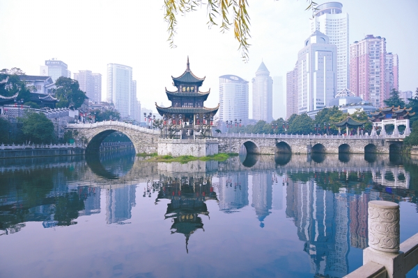 贵阳城南,南明河如碧练绕城,鳌矶石似灵鳌卧波。甲秀楼飞檐翘角,凌石而立,映天光、接云影,恰应了黔中那句民谚:“贵阳有座甲秀楼,半截插在云里头。”