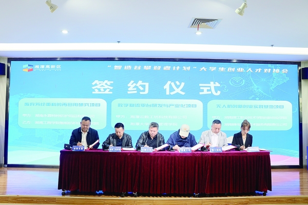 9个月后,今年4月1日,湘潭高新区举行“智造谷攀登者计划”大学生创业人才对接会。会上,一份汇集43家企业85项需求的清单对外发布,6个技术合作与业务外包协议现场签约,3个大学生创业团队登台路演。