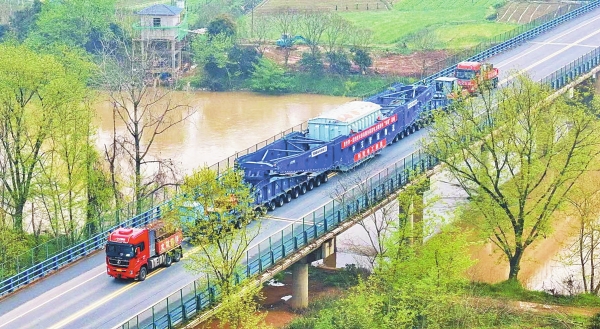 4月1日13时,长沙1000千伏特高压变电站扩建工程第二台主变压器顺利运抵长沙县。该设备是完善华中“日”字型特高压交流环网的国家重点输电工程的核心设备。这台“巨无霸”车货总重达445吨,运送车体长100米、宽5.224米、高4.95米,运输车辆通过42轴线、276个车轮,由两台超600马力的牵引车头前拉后推。此次全程护送任务由长沙市交通运输局牵头,长沙市交通综合执法支队组织,3月30日从衡阳启运。