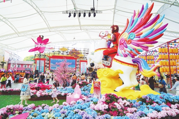 4月4日,游客在长沙世界之窗参加“四月踏青季”游园活动。百米花街长桌寒食宴、二十四花神闹春、怀旧童趣游戏比拼等活动精彩纷呈,为游客呈现了一场融合古风雅韵与童年趣味的春日盛宴。