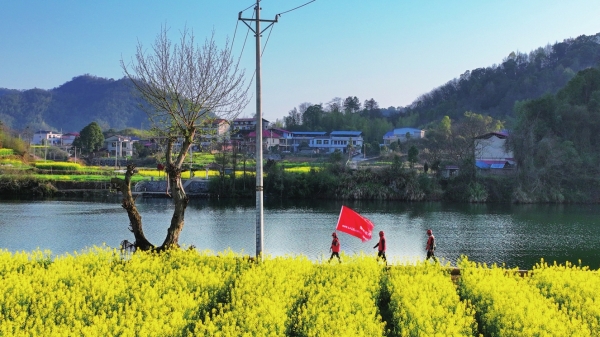 4月10日,国网娄底供电公司(电骏马)东方红共产党员服务队在双峰溪口巡视线路设备。